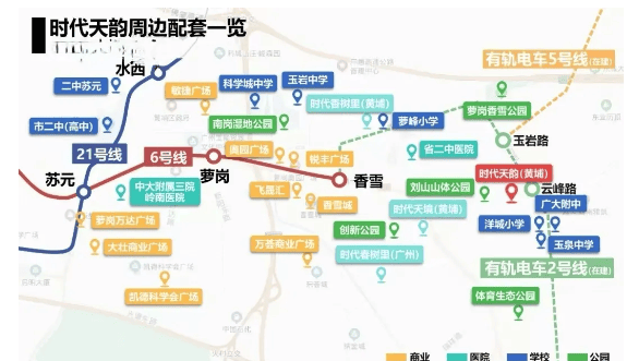 交通实测数据令人惊喜。项目紧邻地铁6号线和21号线的香雪站,步行仅需8分钟即可到达。地铁6号线贯穿广州东西,连接天河、越秀、荔湾等核心区域;21号线通车后将串联增城、黄埔、天河等区域,形成便捷立体交通网络。从项目出发,15分钟即可直达珠江新城,轻松畅达全城,无论是上班通勤还是休闲娱乐,都能享受高效便捷的出行体验。