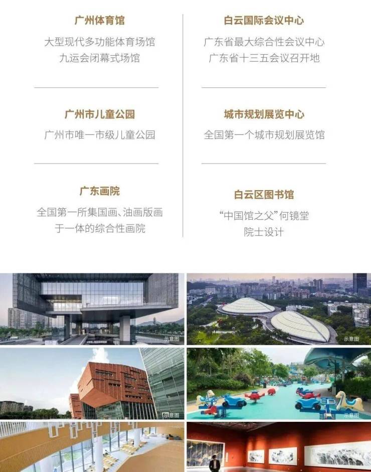 周边8大省一级学校环绕,包括省实验中学白云新城校区、培英中学及附属小学、广东外语外贸大学及附属小学、广园小学及中学、白云区民航学校等