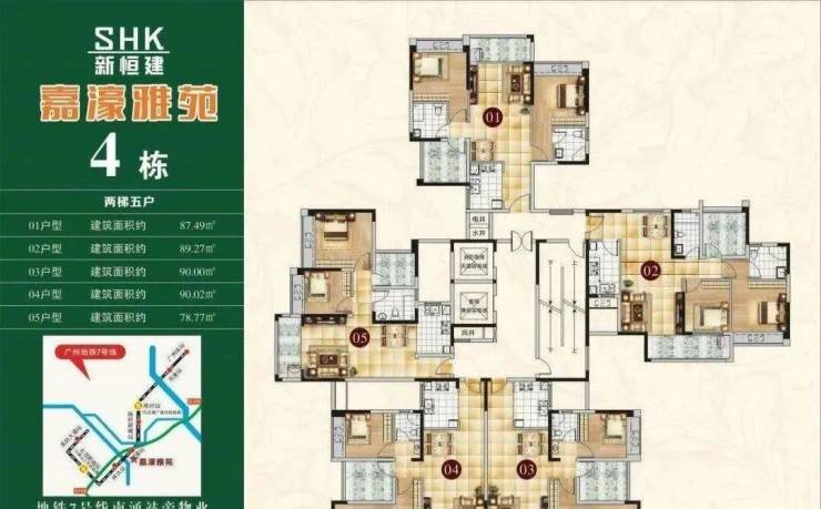 目前在售的户型面积约为87-90平方米,所有户型均带有阳台,部分户型可欣赏到美丽的江景。四种户型分别为:01户型87.49㎡,02户型89.26㎡,02户型89.27㎡,03户型90㎡,04户型90.02㎡。每个户型的设计都充分考虑到了空间利用率和居住舒适度。