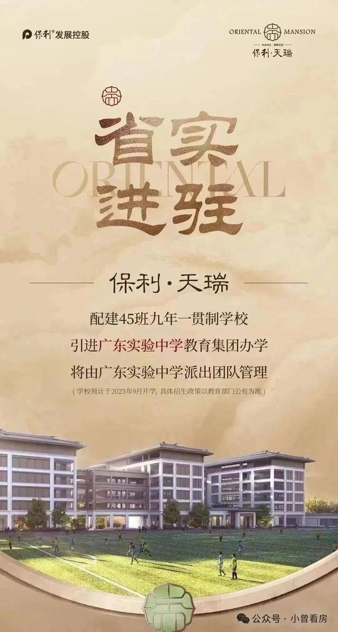 教育配套是保利天瑞目前最受关注的卖点之一。项目自带18班幼儿园和45班九年一贯制公办学校,这在市区项目里已经算厚道。更关键的是,学校已正式官宣引入广东实验中学教育集团,由省实团队直接管理运营,这是天河区配建公办学校首次引入省市属头部品牌,意义比较特殊。学校计划2025年9月开学,未来家门口就能享受优质教育资源,接送孩子特别方便。当然具体招生细则还要看当年教育局的政策公布。