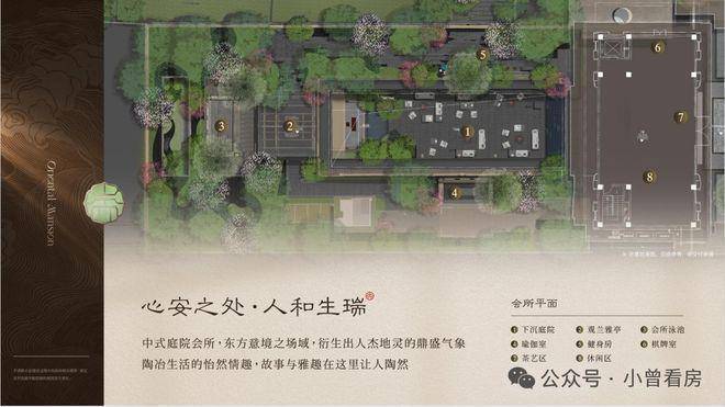 园林部分是项目的一大亮点,约6.8万平方米的中式风格,沿着“礼道-见松-步水-游廊-归堂”的礼制序列展开,细节打磨得很用心。社区还配有庭院式会所,里面有瑜伽室、泳池、茶室、休闲区等功能空间,以东方美学为主调,整体氛围安静尊崇,适合日常放松。