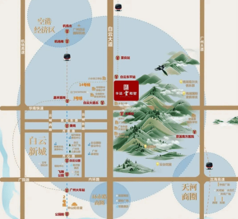 华远·云和墅坐落于广州市白云区的白云新城CBD核心地带,紧邻白云山麓。作为北京华远地产在华南区域的首发项目,华远·云和墅以其独特的地理位置、顶级的产品定位以及丰富的配套设施,成为了广州高端住宅市场的一颗璀璨明珠。这里不仅坐享总部集聚与空港经济双重红利,而且依托白云山得天独厚的自然景观与人文底蕴,为追求高品质生活的精英人士提供了一个理想的生活空间。