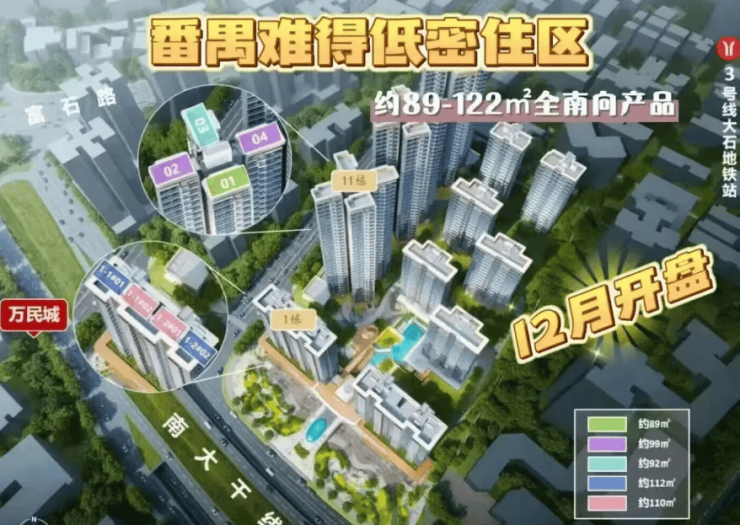 首先,地段优势明显。项目位于番禺大石街道南大干线北侧,享受着大湾区交通动脉的发展红利,双地铁 + 城际 + 主干道的立体交通网络,让通勤和出行都极为便捷,尤其是对于在天河、海珠、琶洲等核心区上班的人群来说,地理位置非常优越。