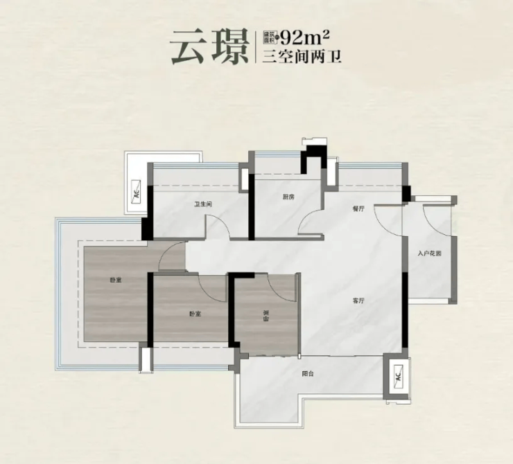 建面 92㎡三房两厅两卫,售价 245-265 万元,西南朝向,采用南北对流设计,全屋没有暗房,采光通风都非常不错。这个户型最吸引人的亮点是自带 800 库收纳系统,不管是大件的行李箱、婴儿车,还是日常的杂物,都能妥善存放,让家里的空间更整洁有序。对于有孩子的家庭来说,充足的收纳空间真的太重要了,能有效避免家里被孩子的玩具、用品堆得乱七八糟。