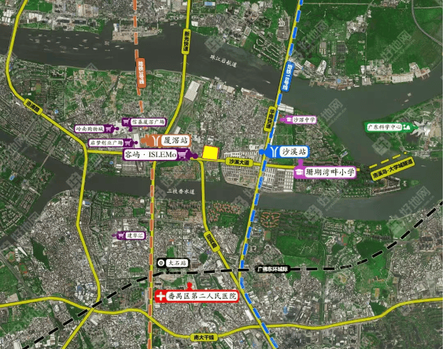 项目西侧约1公里处汇集了启梦创业广场、岭南购物城等多个购物广场,形成了浓厚的商业氛围。地块毗邻的丽江明珠酒店正在拆除并计划变身为一座规模宏大的10万㎡非标商业体——容屿・ISLEMo(南方艺文岛岸),这将为居民提供更多元化的购物和休闲体验。医疗设施方面,广东省妇幼保健院和二甲番禺区第二人民医院均在附近,为居民健康保驾护航。
