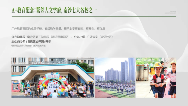 需特别说明的是,具体招生政策以当年南沙区教育局官方发布为准,但项目所处的蕉门河板块历来是南沙教育资源优先投放区域,入学保障度高。