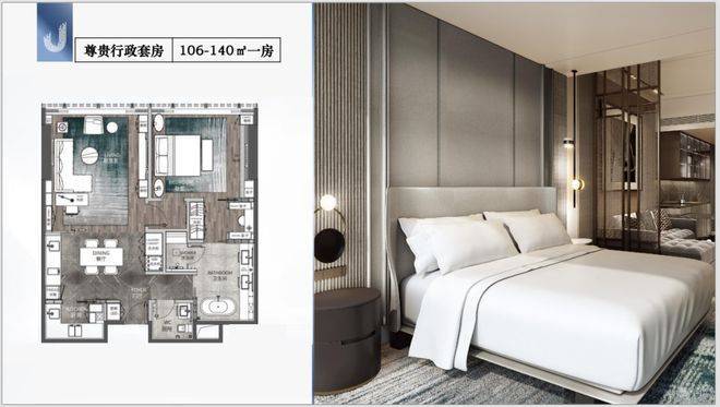 J公馆提供了完整的产品矩阵,精准匹配不同需求:建面约69-77平方米的高级行政套房,适合频繁往返的商务精英或作为个人投资;约106-140平方米的尊贵行政套房(一房)