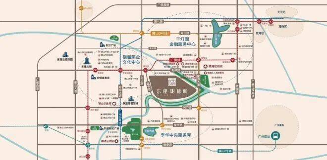 项目位于禅城区与桂城交界处,恰好处于广佛融合的前沿地带。从明德城出发,步行约400米即可抵达广佛线朝安站,早高峰乘坐地铁6站即可到达广州荔湾;若选择驾车,周边“五纵五横”路网密集,佛山大道、岭南大道、海八路等主干道环绕,打车到千灯湖商圈平均耗时不到15分钟。未来随着佛山3号线及广州28号线(规划中)陆续建成,区域通勤效率还将进一步提升。