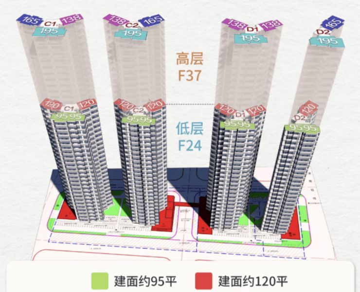 江湾潮起住宅采用两梯三户或两梯四户设计,高低分区合理布局,满足不同家庭需求。户型涵盖90-190㎡范围,南向江景设计保证采光和视野。高区以大平层为主,低区以改善型户型为主,产品线灵活,市场接受度高。整体户型动静分区清晰,客厅与卧室布局科学,生活动线合理。虽然地块密度较高、楼间距紧凑,但通过精工设计和立体园林配置,使每户都能获得舒适居住体验,实现高效空间利用与滨江生活品质兼顾。