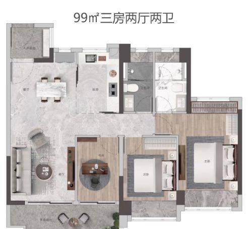 开发阶段为现房,产品以新规小户型及部分改善型中大户型为主,兼顾改善型家庭及小型家庭的多样化需求。住宅设计遵循“低密度、生态化、功能完善”的原则,强调居住舒适性及空间灵活性,满足不同家庭结构的居住体验。