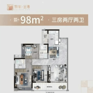 98㎡三房:紧凑实用,功能齐全,适合年轻家庭;