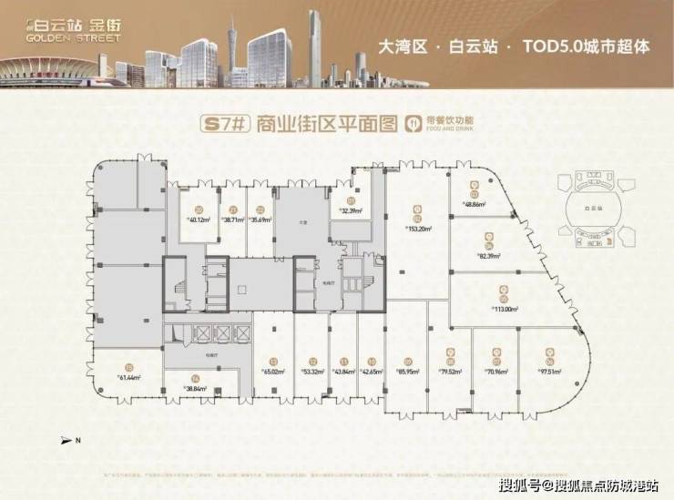 产品全能性:30-70㎡小面积户型,总价 150 万起降低置业门槛,5 米层高可实现双层利用,100% 带餐饮功能,适配多元经营需求。