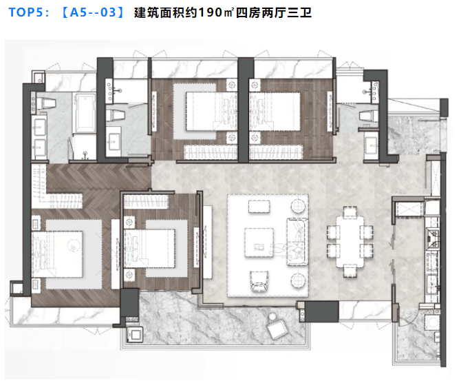 富力·富云山首推A组团,共有5栋楼,面积从120-190平方米不等,包含三房和四房户型。其中,A1、A2栋均为现房发售,即买即入住;A5栋为新推期房,选择性更大。每户均直望白云山,东南向15°错落排布,确保每一户都能享受到最佳的观景视野。项目采用全球知名品牌装修标准,引进先进智能化设计,保障居住的安全与便捷。