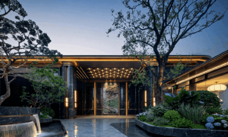 越秀·云萃社区配套设施丰富,注重居住舒适与社交功能结合。小区设有60米宽门庭,采用鎏金奢石嵌套百工照壁工艺,顶部富贵璇光门造型,社区入口设计独特且富有文化内涵。园林设计融入“老钱风”风格,六进归家、九园围庭,增强空间层次感和居住仪式感。