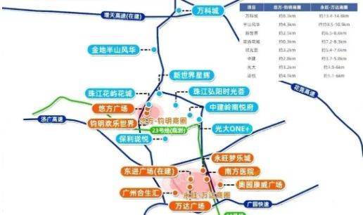 项目周边以城市快速路与主干道组成交通骨架,其中永宁大道、新新大道、荔新公路形成对外环通体系,可实现向科学城、黄埔、天河方向的快速连接。区域交通网络具备对中心城区与产业区的双向联通能力,为自驾通勤人群提供便利性。