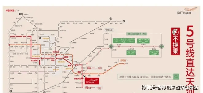 5号线夏园站(直线距离约800米):15站直达珠江新城,无需换乘;