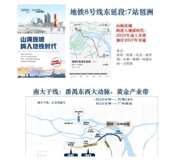 尽管目前公共交通设施相对欠缺,但随着南大干线的全线开通,自驾出行变得极为便捷,从凯德山海连城到琶洲仅需26分钟车程。未来,规划中的地铁8号线东延段以及莲花山枢纽站将大大改善该区域的交通条件,预计通车后,居民可以通过轨道交通快速抵达市区各个重要节点。然而,当前最现实的选择依然是依赖私家车或少量公交线路进行日常通勤。值得注意的是,虽然规划中有多条轨道线路经过,但距离项目较远,实际使用便利性仍有待观察。