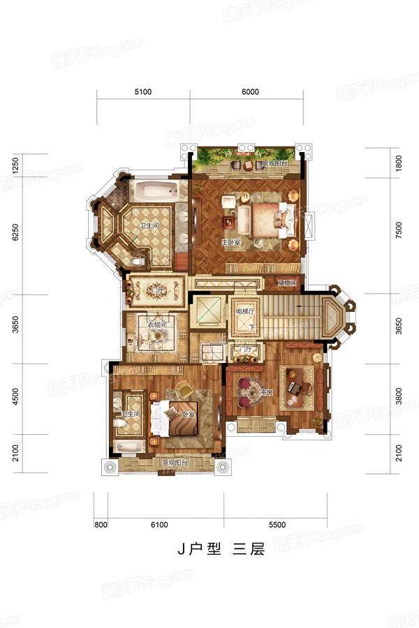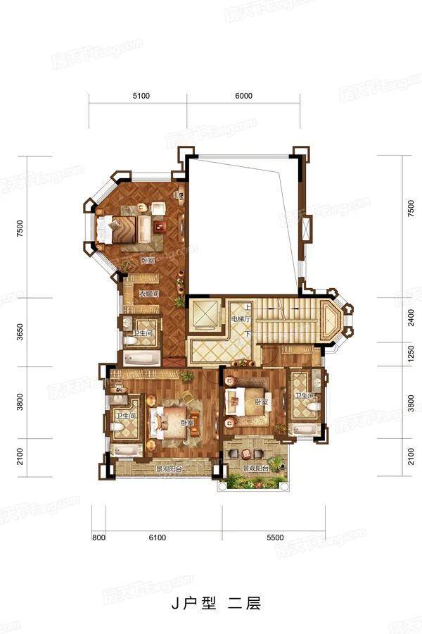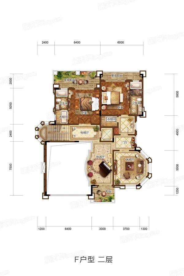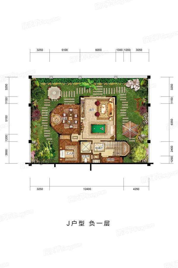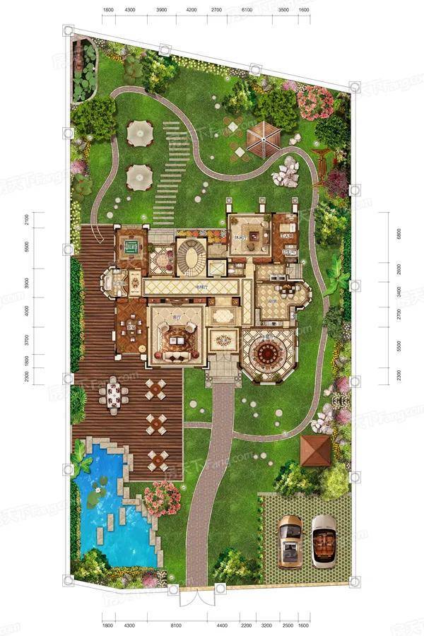 户型六:1235㎡户型 花园面积:2406-2850㎡