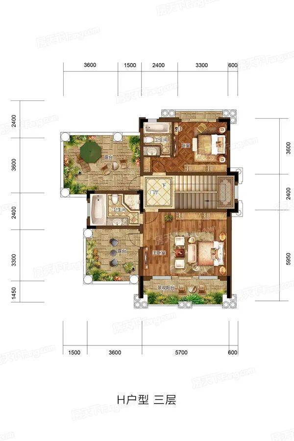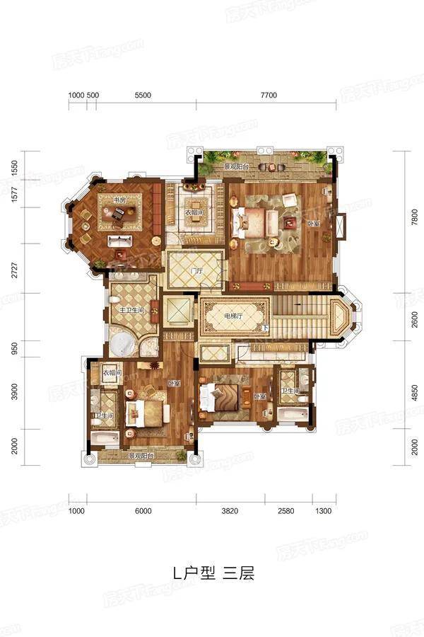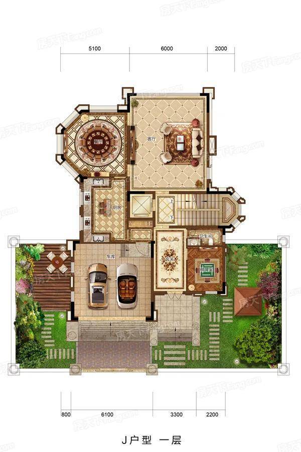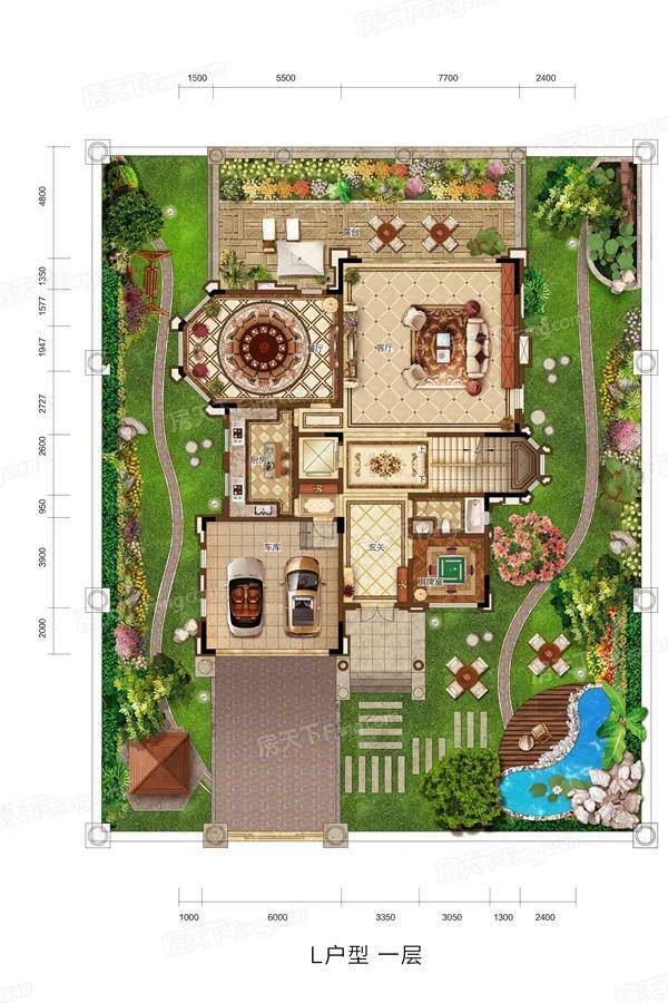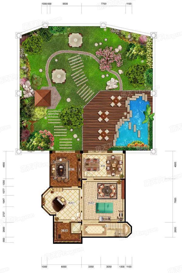 户型五:777㎡ 户型 花园面积:1000-1597㎡