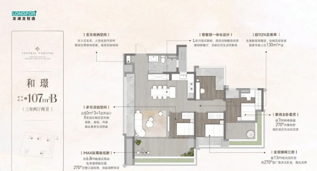 龙湖亚伦央璟颂推出多种户型供选择,包括95㎡、107㎡、128㎡和142㎡的住宅单元,所有户型均采用了新规设计,使用率超过130%。这不仅意味着每户能够享受到更宽敞的生活空间,同时也保证了房间的通风和采光效果。