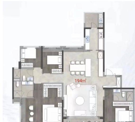 主卧套房设计豪华,配备独立卫生间和步入式衣帽间,为主人提供舒适私密的休息空间。次卧和儿童房布局合理,空间大小适中,可根据家庭成员的喜好进行个性化装修布置。整体户型注重空间的实用性与舒适性,为追求高品质生活的家庭提供了理想的居住选择。