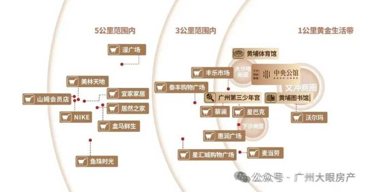 周边有三大成熟商圈环绕,即享惠润广场、沃尔玛等商业配套,5公里范围内就能到三溪美林天地、保利鱼珠时光、山姆会员店、居然之家、M-PARK漫广场等大型商业配套