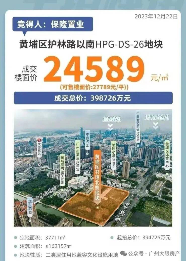 当初,黄埔图书馆北侧地块以24589元/㎡的地价(未扣除配建),扣除配建后地价超过2.7万元/㎡,位居区域榜首,成为新地王。