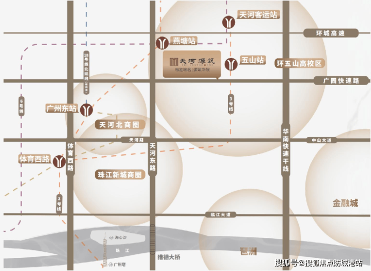 项目雄踞天河五山科创走廊核心,3公里内汇聚华南理工大学、华南农业大学等7所高校,2025年板块GDP突破5000亿元,高净值人群占比超40%。毗邻广州国际金融城(直线距离3.5公里),15分钟通达珠江新城,形成“CBD+CTD”双核驱动发展格局。