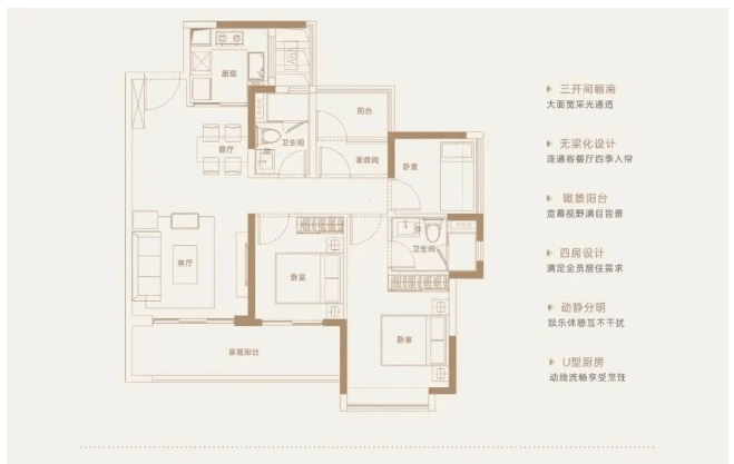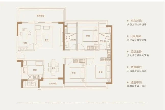 128㎡/142㎡/143㎡四房两厅两卫:宽敞舒适,拥有独立书房,满足大家庭的需求;