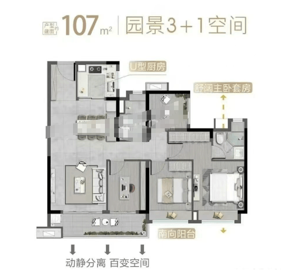 空间布局:四开间朝南,约6.3米双开间景观阳台,采光面极宽,室内明亮温馨。南向阳台不仅可用于晾晒衣物,还可打造为休闲花园或种植区。