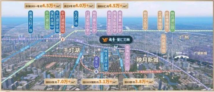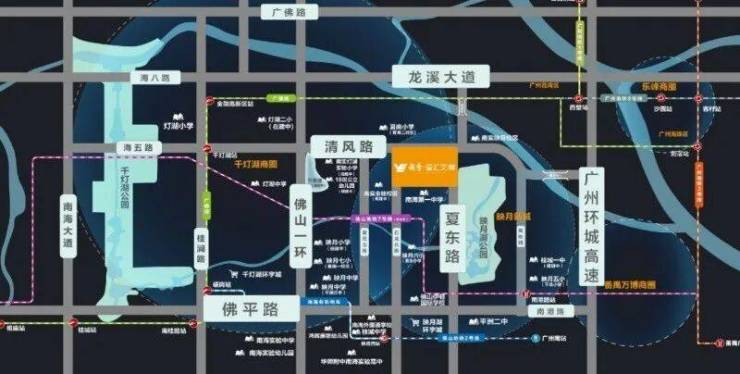 越秀·星汇文瀚选址佛山南海桂城夏东路,地处千灯湖板块东拓与映月湖板块的交汇核心地带。这一地理位置不仅承接了千灯湖CBD的辐射红利,更享有映月湖新兴生态住区的静谧氛围,实现了繁华与自然的完美平衡。