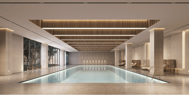 下沉式会客厅:建筑面积约2700㎡的下沉式会客厅内设有健身房、游泳池、私宴厅等活动空间,为业主提供了一个私密而豪华的生活享受。