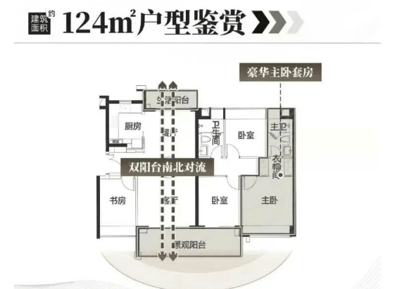 B1/B2栋68–124㎡二至四房:适合年轻家庭或投资客群。68㎡两房布局紧凑高效;95㎡三房实现主卧套间+双卫设计;124㎡四房则具备双阳台、LDK一体化等改善元素。