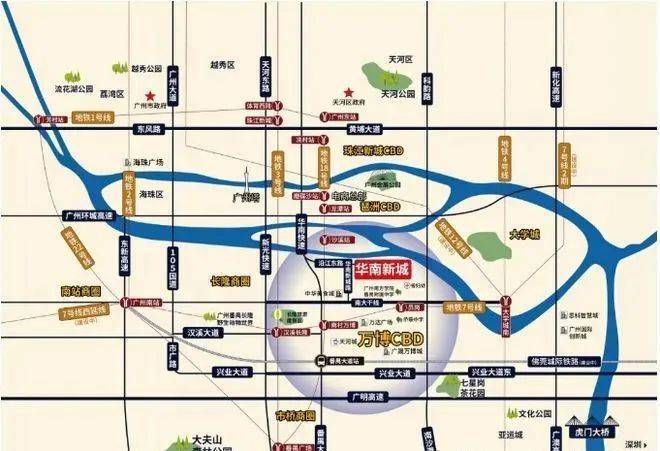 5横:沿江路、兴南大道-南大干线、汉溪大道、兴业大道、广明高速;5地铁:约500米7号线员岗站,1站万博、4站珠江新城,便捷接驳2、3、4、18号线,30分钟瞬达全城;6隧道:金光东隧道;华南新城板块规划预留两条过江隧道,洛溪岛预留3条过江隧道通往海珠区;