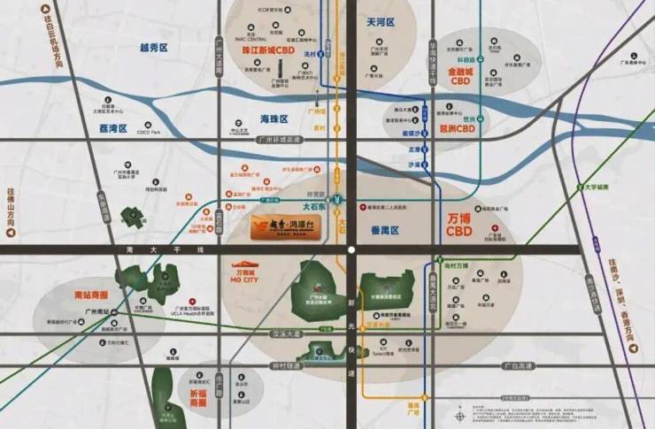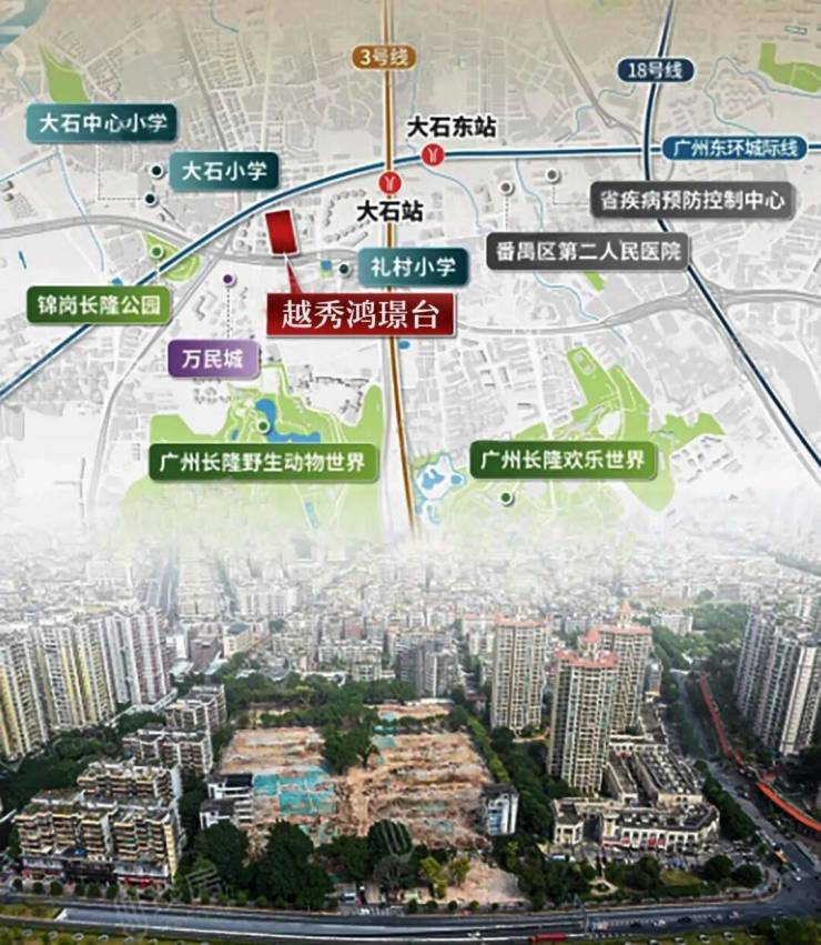广州,这座千年商都,其城市发展的脉络始终沿着几条核心的轴线向外延伸。其中,第三中轴线作为连接老城区与新城区的重要纽带,承载着广州未来发展的无限可能。而越秀鸿璟台,正是落子在这条黄金轴线的关键节点之上——番禺区大石街南大干线北侧。这里不仅是地理坐标上的交汇点,更是资源要素流动的枢纽站。