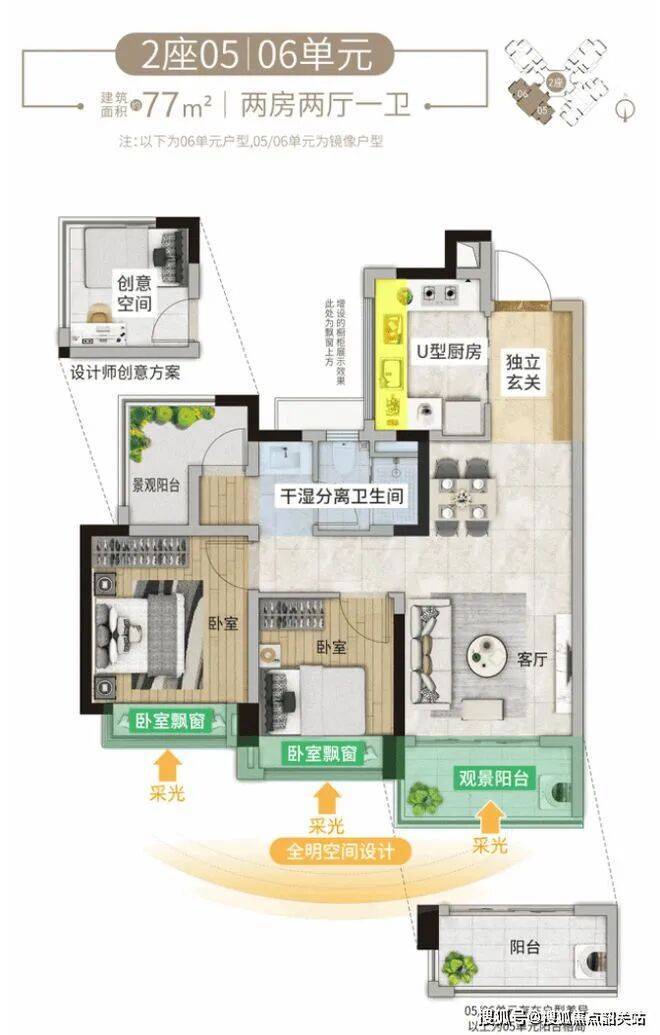 户型面积:建面约77-106㎡