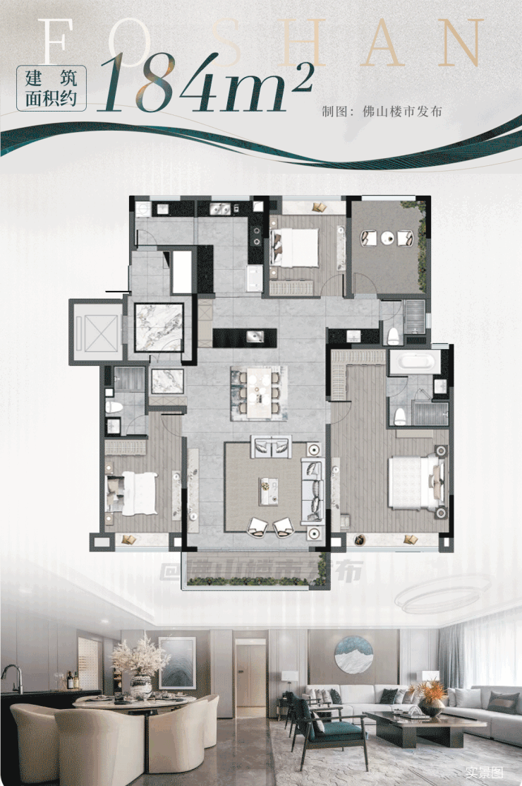 建面约184平户型,有着家族共居的排面。