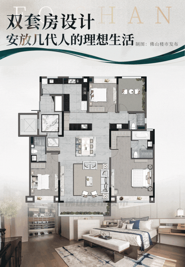 双套房设计,完美解决两代人不同作息的需求,能更好尊重家人的生活习惯与边界。