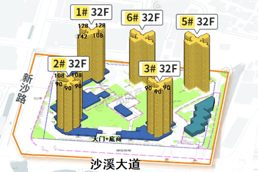 户型:90㎡、108㎡、128㎡、142㎡低密瞰江奢宅
