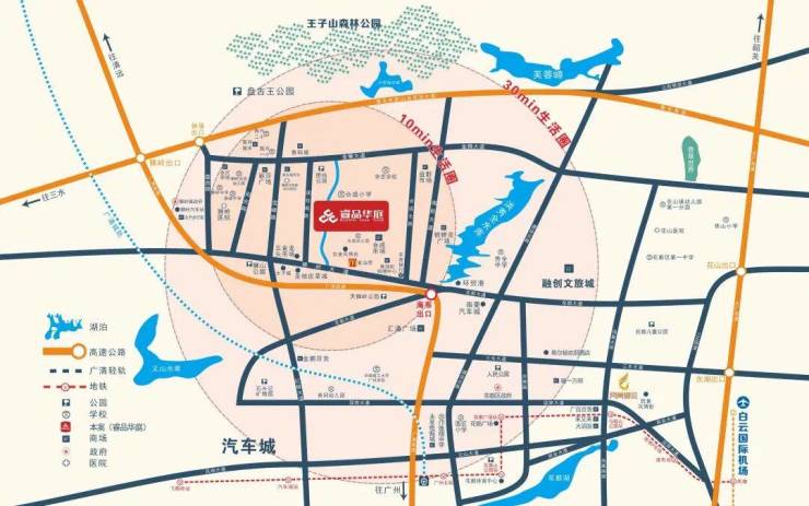 休闲:约5-15分钟享受团结公园、狮子山公园、王子山森林公园、芙蓉嶂度假区、秀全公园等著名景观,成为名副其实的广州“后花园”。
