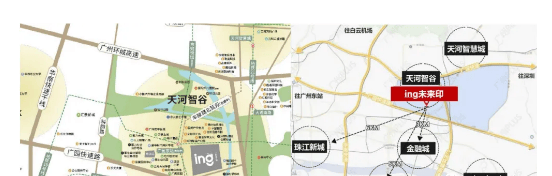 ing未来印坐落于广州天河区天河智谷核心区域,属于广州第三中轴核心板块,地处广深科技创新走廊起步区,地理位置得天独厚。天河智谷作为天河区重点发展的高新产业板块,重点发展新一代信息技术、文化创意、生物科技、人工智能等产业,目前网易总部、中国移动、小鹏汽车等大型上市公司纷纷进驻,未来将有超2000家名企进驻,人口超68万,创造1100亿元产值,区域发展潜力巨大。