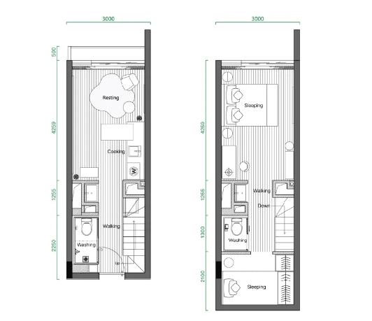 30㎡双钥匙户型主打“一屋两用”,多样化投资模式可提高收益,上下两层均配备客厅、厨房、卫浴,独立双套房设计,可分别出租或自住+出租,各种功能区可随心打造,空间自由布置,同时也可作为大开间工作室,轻松自由,适合创意发散,无论是投资还是自主办公,都是优质选择。