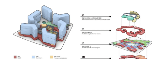 该商业综合体设计与体量等同于广州天环广场,打造集下沉式中央广场、大型生鲜超市、巨幕影院、美食天地、生活馆、潮流服饰、新零售等于一体的地标型城市商业综合体,分层规划明确:负1层为大型生鲜超市及下沉空间,满足日常食材采购需求;1层为中央广场、景观走廊及开放式街区,适合休闲漫步、打卡消费;2层为巨幕影院、美食天地、生活馆、潮流服饰及新零售区,涵盖娱乐、餐饮、购物等多种业态;3层为24小时健身房、恒温标准泳池、创意餐饮、烘焙轻食及外摆餐区,满足休闲健身、朋友小聚等需求。