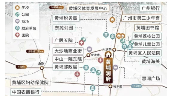 黄埔润府依托老黄埔主城芯脉(丰乐中路与黄埔东路交汇处),打造 15 分钟全能生活圈,执掌城市万象资源。项目位于老黄埔成熟生活区,15 分钟内可通过地铁 5/7 号线大沙东站(400 米步行)2 站到鱼珠、3 站到三溪,直达珠江新城(5 号线)、长隆万博(7 号线);15 分钟生活圈覆盖泰丰购物广场(现有商业)、规划中的项目自带商业(1-4 层商场 + 沿街商业),同时近享黄埔儿童公园、黄埔图书馆、广州市第三少年宫,无论是商务通勤、日常采购还是亲子休闲,皆可高效完成。更值得一提的是,15 分钟内可达中山一院东院(三甲)、广医五院,医疗保障完善,真正实现 “老黄埔芯脉之上,执掌刚需改善全能生活” 的体验。