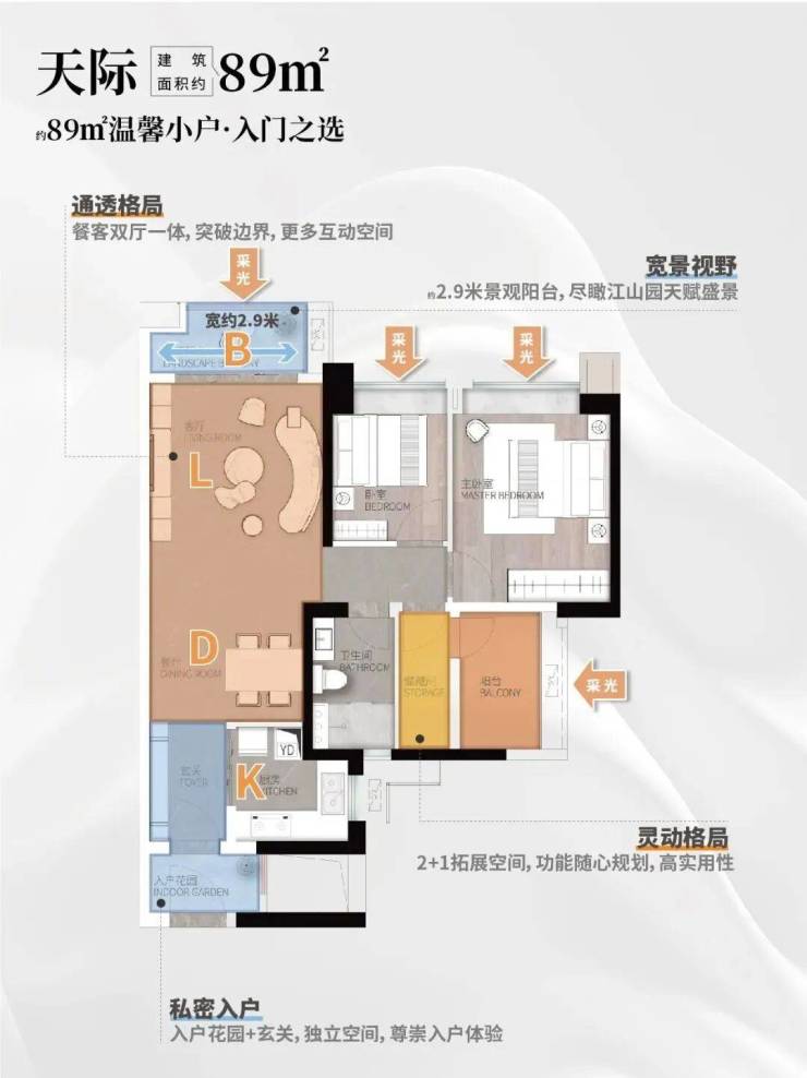 当前在售的主要为天际组团,总层高39层,预计于2025年11月交房。提供约89-106-129㎡的学铁商全能小户,涵盖厨房三件套、嵌入式洗碗机、厨余垃圾处理器、净水器、风管机、热水器、智能马桶盖等高端装修配置。不同户型设计充分考虑了景观资源,如南向望江等特色,适合改善型家庭。