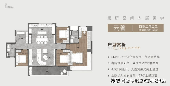 143㎡四房两厅两卫:超大面积,适合需要更多私人空间的家庭。
