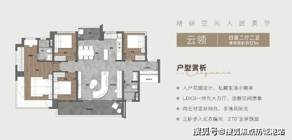 121㎡四房两厅两卫:豪华大气,适合追求高品质生活的家庭。