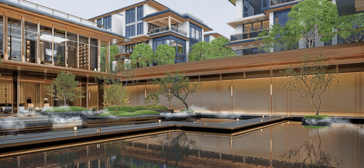 在建筑风格方面,碧桂园凤凰城・凤樾府摒弃了传统的欧式、美式别墅风格,创新性地采用了宋代建筑风格,将中国传统建筑美学与现代居住需求完美融合。宋代建筑以其简约、雅致、内敛的风格著称,强调与自然的和谐统一。凤樾府的建筑设计汲取了宋代建筑的精髓,采用了白墙灰瓦、飞檐翘角、镂空花窗等经典元素,营造出一种古朴典雅、宁静致远的东方意境。同时,项目在建筑细节上精益求精,采用了高品质的建筑材料和先进的施工工艺,确保建筑的耐久性和美观性。