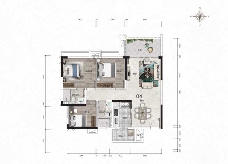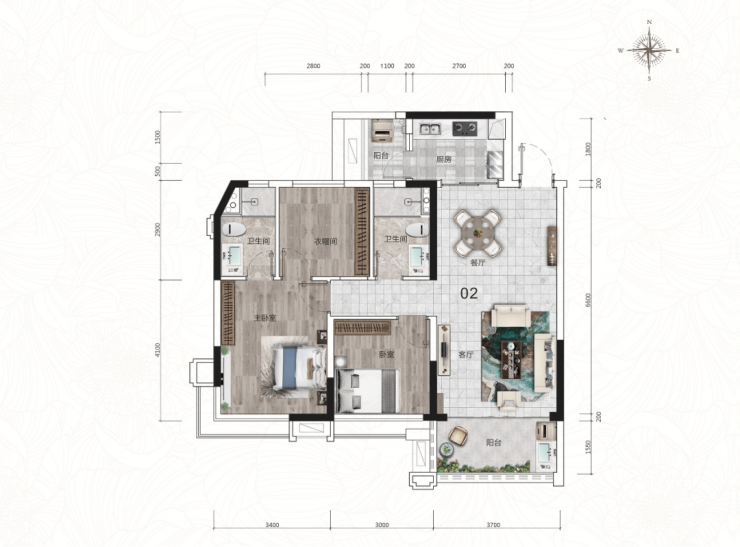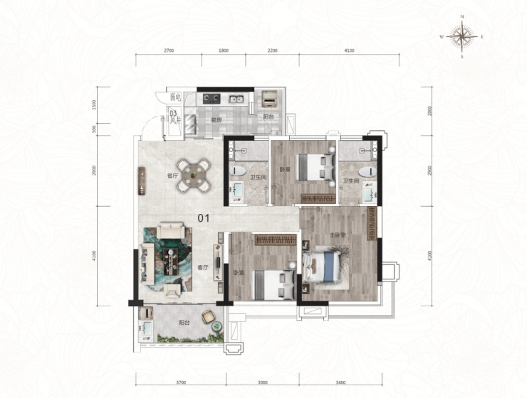 01、02、04户型实现了功能实用性与居住舒适度的完美融合,为业主敬呈尊贵质感人居。