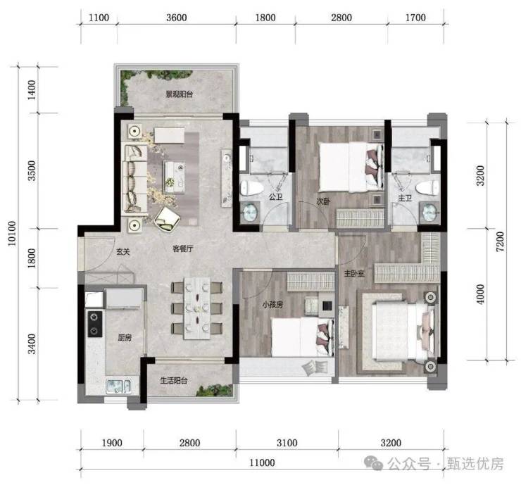 龙光・玖誉台目前在售主力户型为 98-139㎡南北对流三至四房,均为精装现房,涵盖刚需、改善全年龄段需求,户型设计方正通透,动静分离,高附赠空间,每一处细节都贴合业主居住习惯。